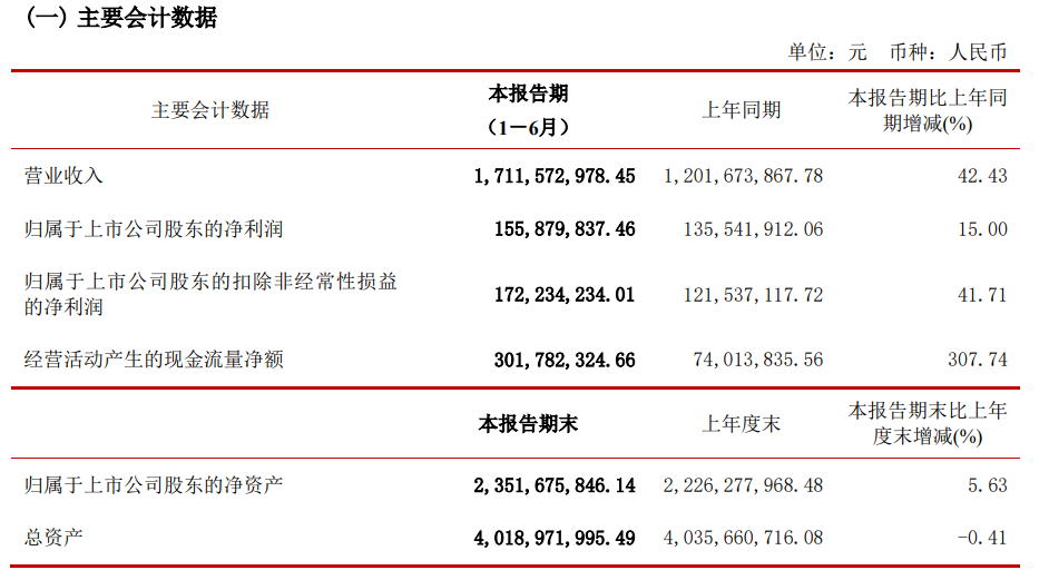 8月23日,松霖科技公布2022年半年度報(bào)告,報(bào)告期營業(yè)收入17.12億元,同比增長42.43%;歸屬于上市公司股東的凈利潤1.56億元,同比增長15.00%;歸屬于上市公司股東的扣除非經(jīng)常性損益的凈利潤1.72億元,同比增長41.71%;基本每股收益0.39元。